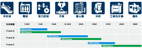 大慣量負(fù)載:離心機(jī)、工業(yè)洗衣機(jī)、粉碎機(jī)、龍門型工具機(jī)…等
