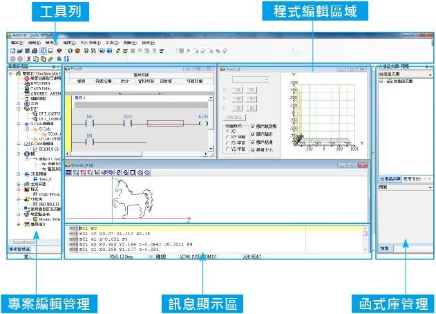 整合運動控制編輯:ISPSoft V3將邏輯編程與運動編程整合在同一套軟件上,并提供符合國際標準規(guī)格 PLCopen® 的功能塊以及臺達提供的豐富功能塊。